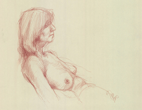 Tekenend of schilderend, in zwart/wit of kleur, het hele model of een deel ervan, figuratief of realistisch, expressief of naturalistisch.