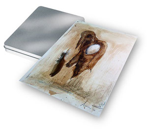 Kleine kunstjes in een fraai geschenkblik. Dat zijn Kunstblikjes. Ze zijn er in diverse uitvoeringen zowel groot (± A4 plus) als klein (± a5 plus).
