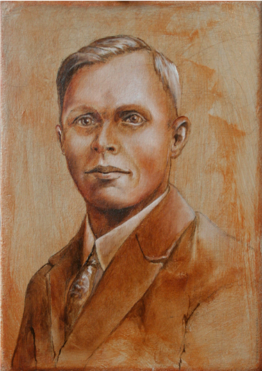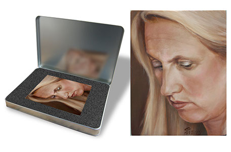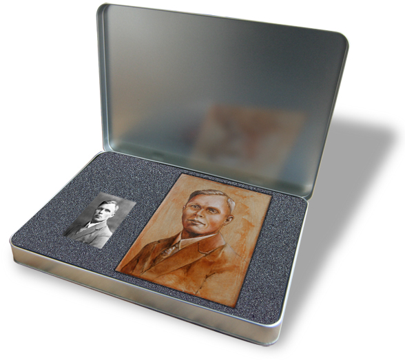 Dit fraaie blikje bevat een, in nostalgische tinten, geschilderd portret naar een oude 'foto'.