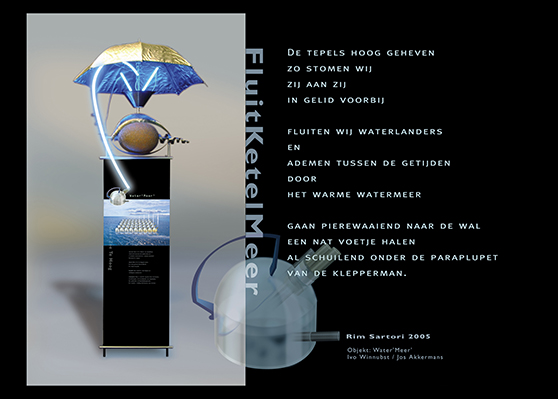 In 2005 ontwikkelden wij (beeldend kunstenaar Ivo Winnubst, beeldhouwer Jos Akkermans en dichteres Rim Sartori) voor de expo GeenZeeTeHoog in Lelystad het projekt Water'Meer'.